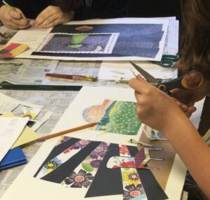 The projects vary each session: drawing, painting, mixed media, sewing, printmaking, pen &
