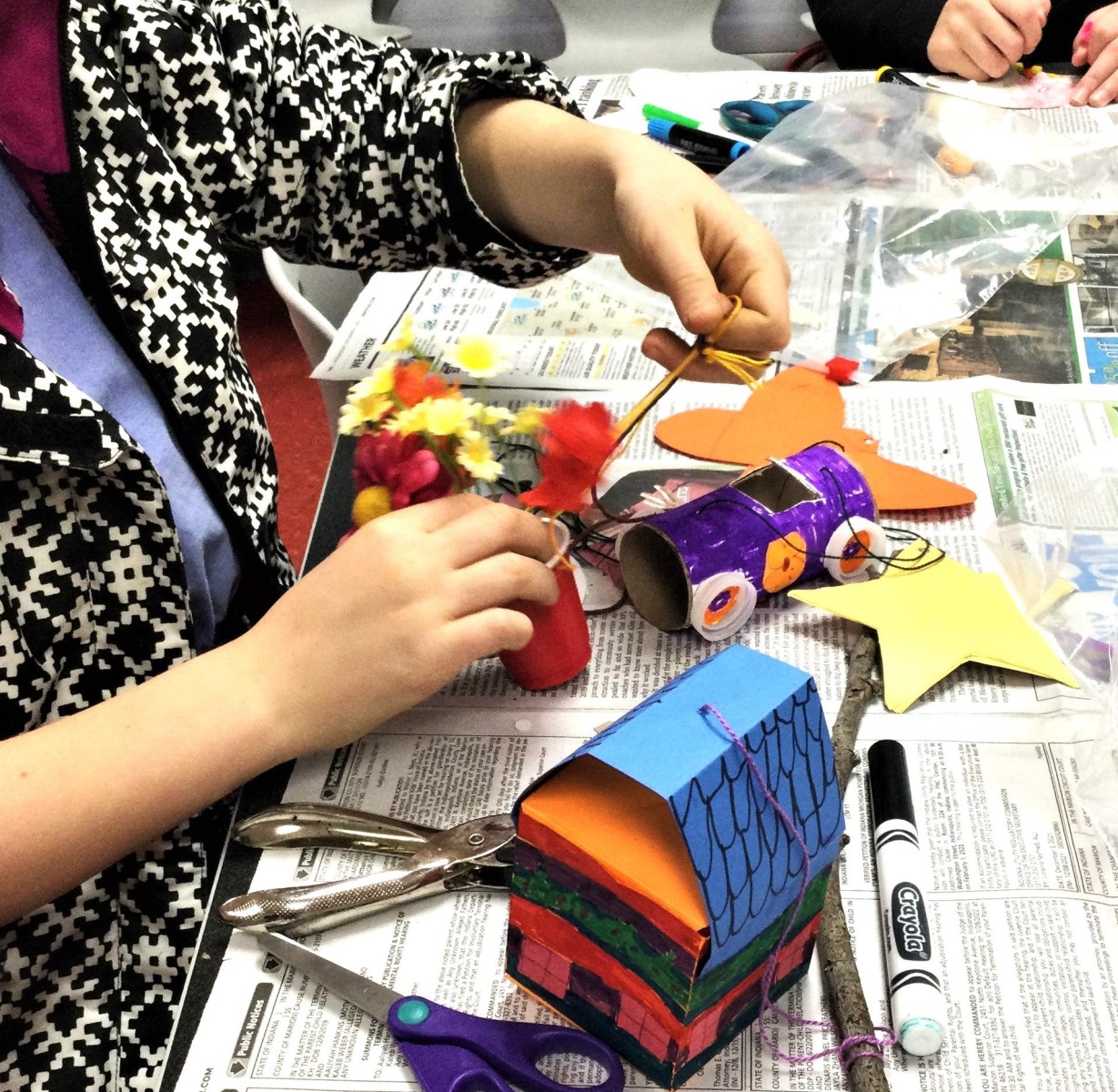 Create 3-D sculptures. Work with cut paper, cardboard, markers, and mixed media. A fun way to use your imagination to design and construct.